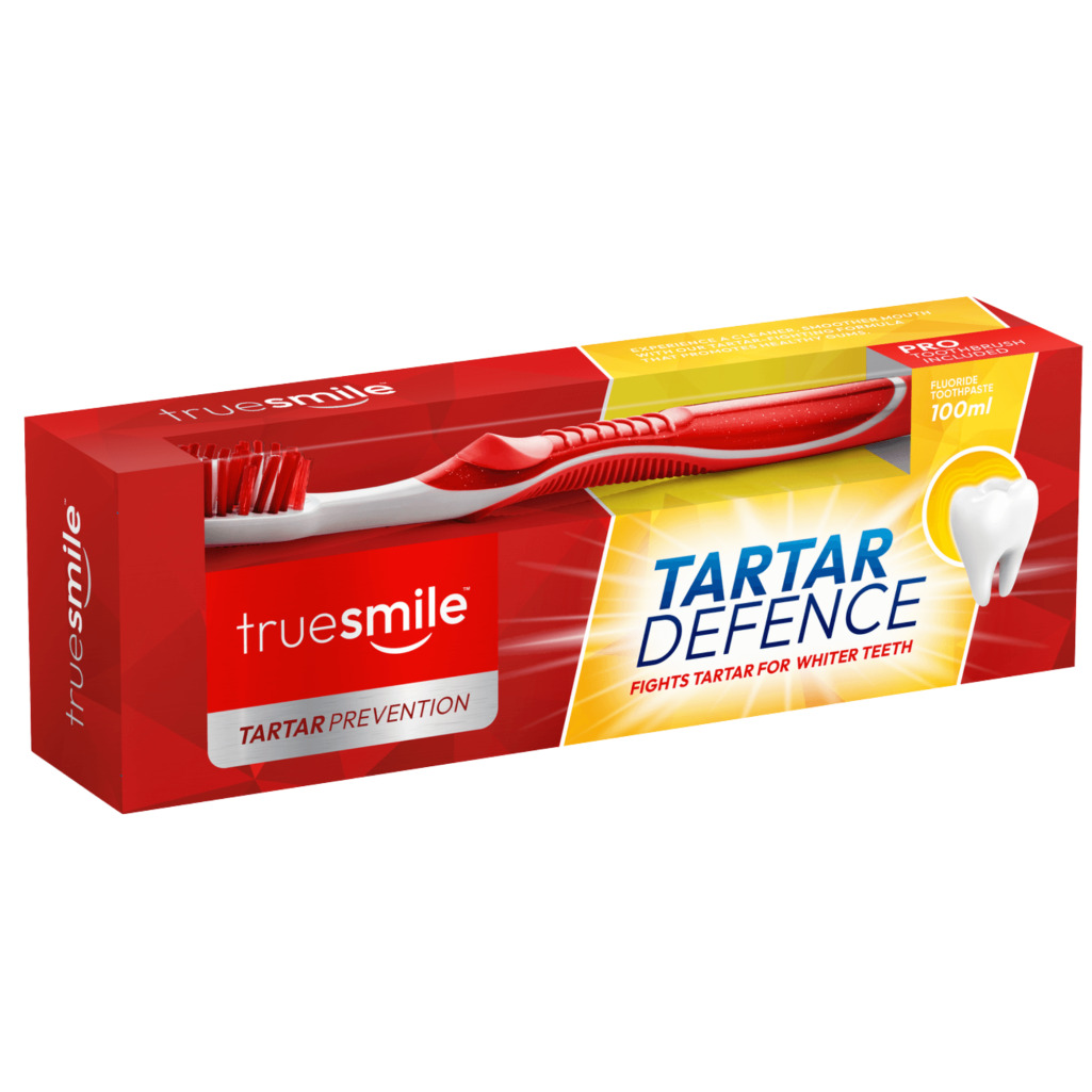 TrueSmile Anti Tar Tar Defence to kompleksowy zestaw higieniczny, w którego skład wchodzi pasta do zębów + szczoteczka, opracowany w celu skutecznej redukcji osadu i kamienia nazębnego. Specjalistyczna formuła 100ml aktywnie chroni szkliwo przed demineralizacją, zapewniając profesjonalną czystość i świeżość. To idealne rozwiązanie dla osób poszukujących gotowego systemu do codziennej, zaawansowanej profilaktyki stomatologicznej w domu.